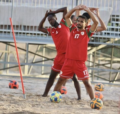 الحصص التدريبية المسائية لمنتخبنا الوطني للشاطئية بمعسكره الداخلي بمحافظة مسقط