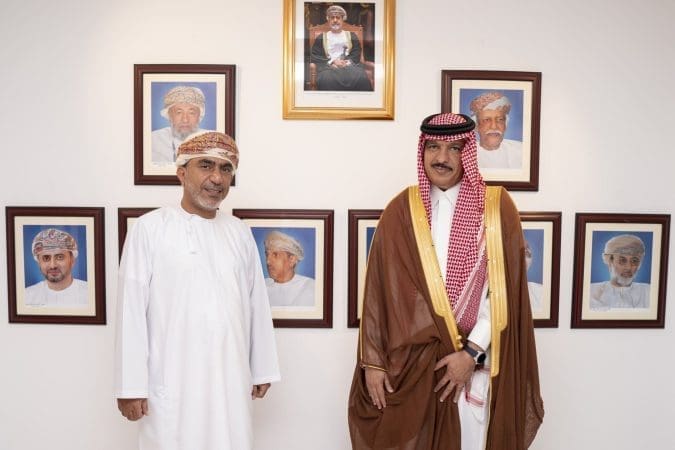 من لقاء رئيس الاتحاد العماني لكرة القدم سالم بن سعيد الوهيبي بسفير المملكة العربية السعودية المعتمد لدى سلطنة عمان سعادة عبدالله بن سعود العنزي