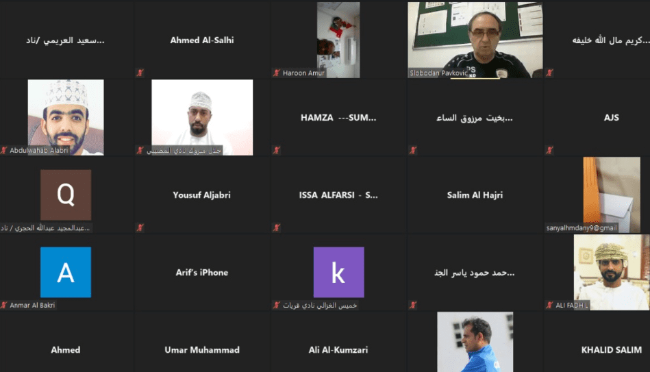نظمت الإدارة الفنية بالاتحاد العماني لكرة القدم صباح اليوم الخميس 25 من مارس الجاري حلقة عمل لمدربي المراحل السنية بالأندية وذلك عبر برنامج zoom، حاضر فيها الخبير الفني بالاتحاد سلوبودان بافكوفيتش وهارون بن عامر البرطماني مدير دائرة التعليم والتدريب.