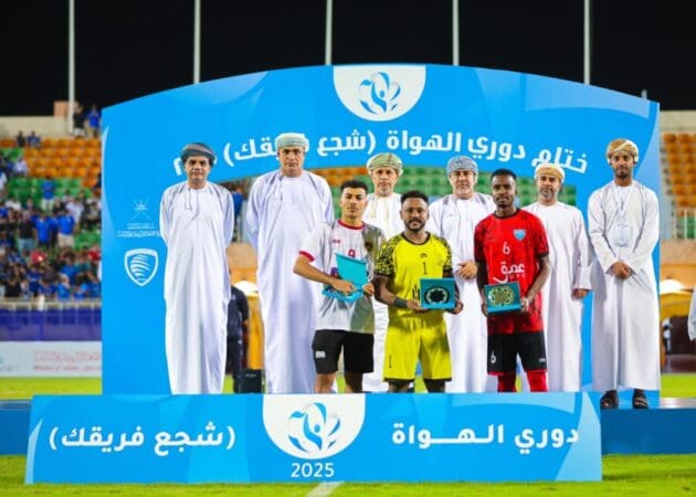 توِّج مساء يوم أمس الأحد فريقُ اتحاد دغمر، ممثِّل محافظة مسقط، بلقب دوري الهواة “شجِّع فريقك” للفرق الأهلية للموسم الرياضي 2025، وذلك بعد فوزه على فريق الملدة، ممثِّل محافظة جنوب الباطنة، بركلات الجزاء الترجيحية، ضمن المرحلة الثالثة والأخيرة من البطولة، عقب انتهاء الوقت الأصلي للمباراة التي احتضنها استاد السيب الرياضي بالتعادل الإيجابي (2 – 2).