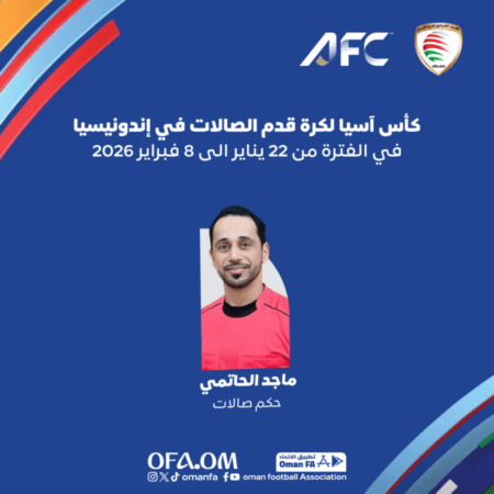 وعلى صعيدٍ متصل، رشّح الاتحاد الآسيوي لكرة القدم الحكم الدولي ماجد الحاتمي للمشاركة في إدارة منافسات بطولة كأس آسيا لكرة قدم الصالات 2026.