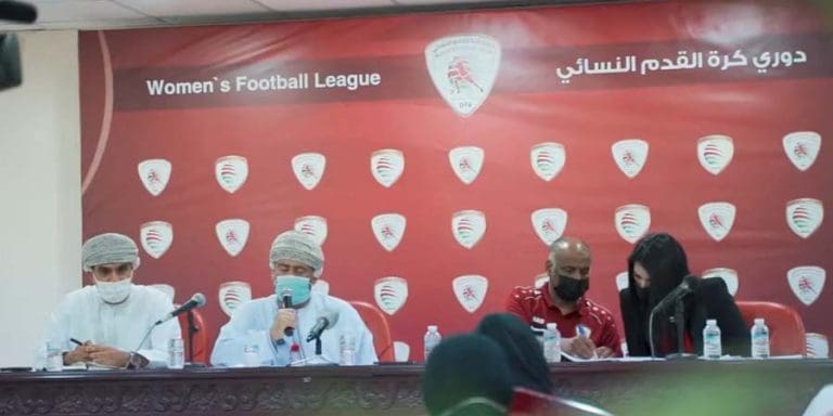 جانب من المؤتمر الصحفي الخاص بدوري كرة القدم النسائي للصالات
